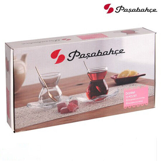 Pasabahce Dantel Teeglas Set 12 Teilig mit Untertassen