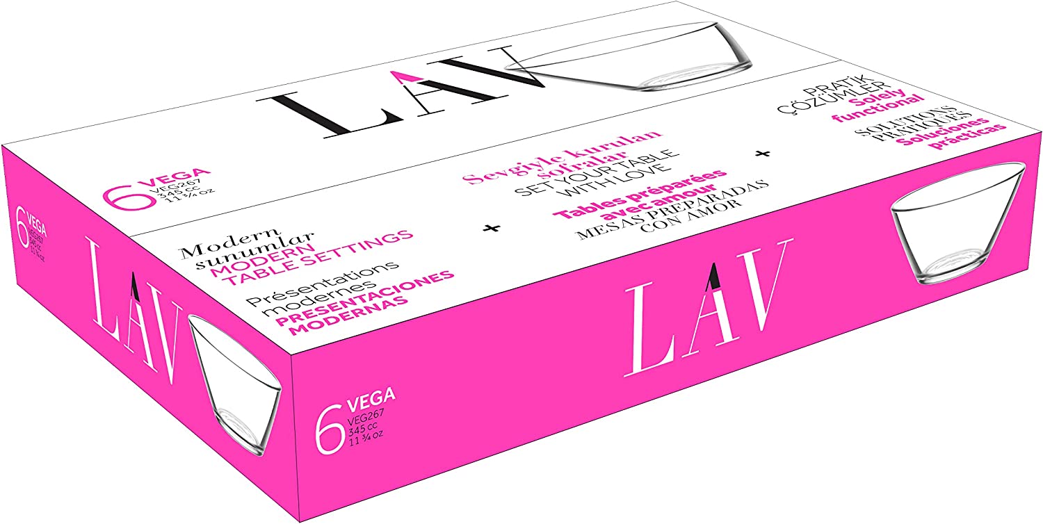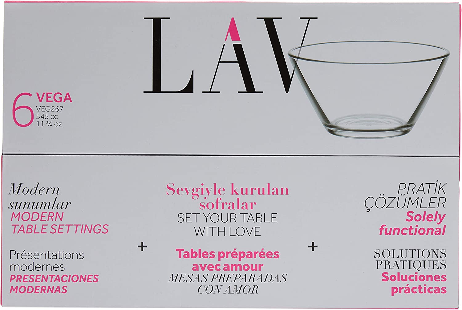 Mit einem Volumen von bis zu 345 ml sind diese Glasschüsseln perfekte Gefäße zum Servieren. Wie alle LAV-Glaswaren ist diese Kollektion spülmaschinenfest, für eine problemlose Reinigung.